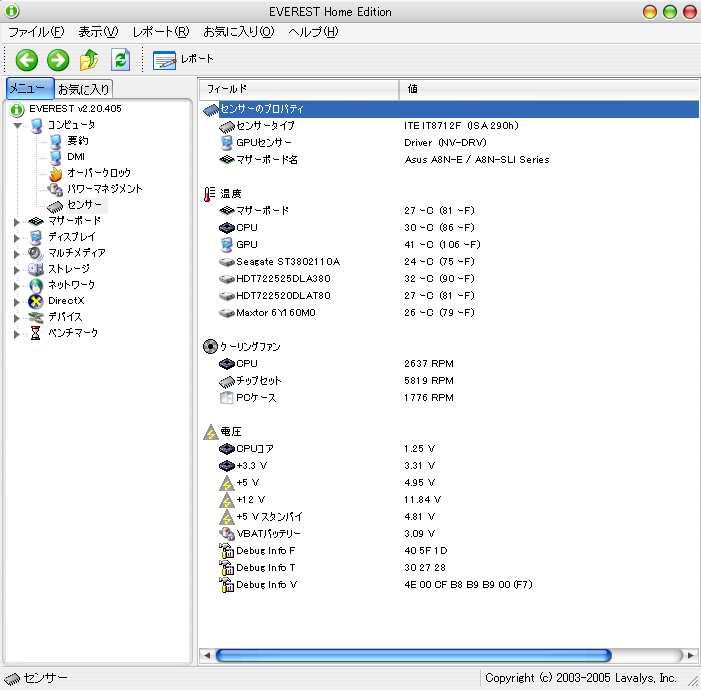 温度センサーだけではなく、メモリやHDDの種類、マザーボードの種類等等表示できます