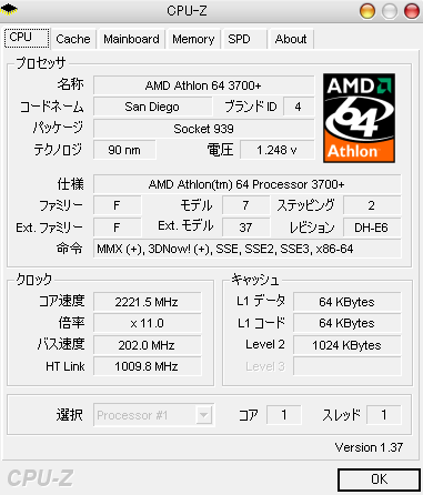 | CPU | AMD Athlon64 3700+(San Diego) |