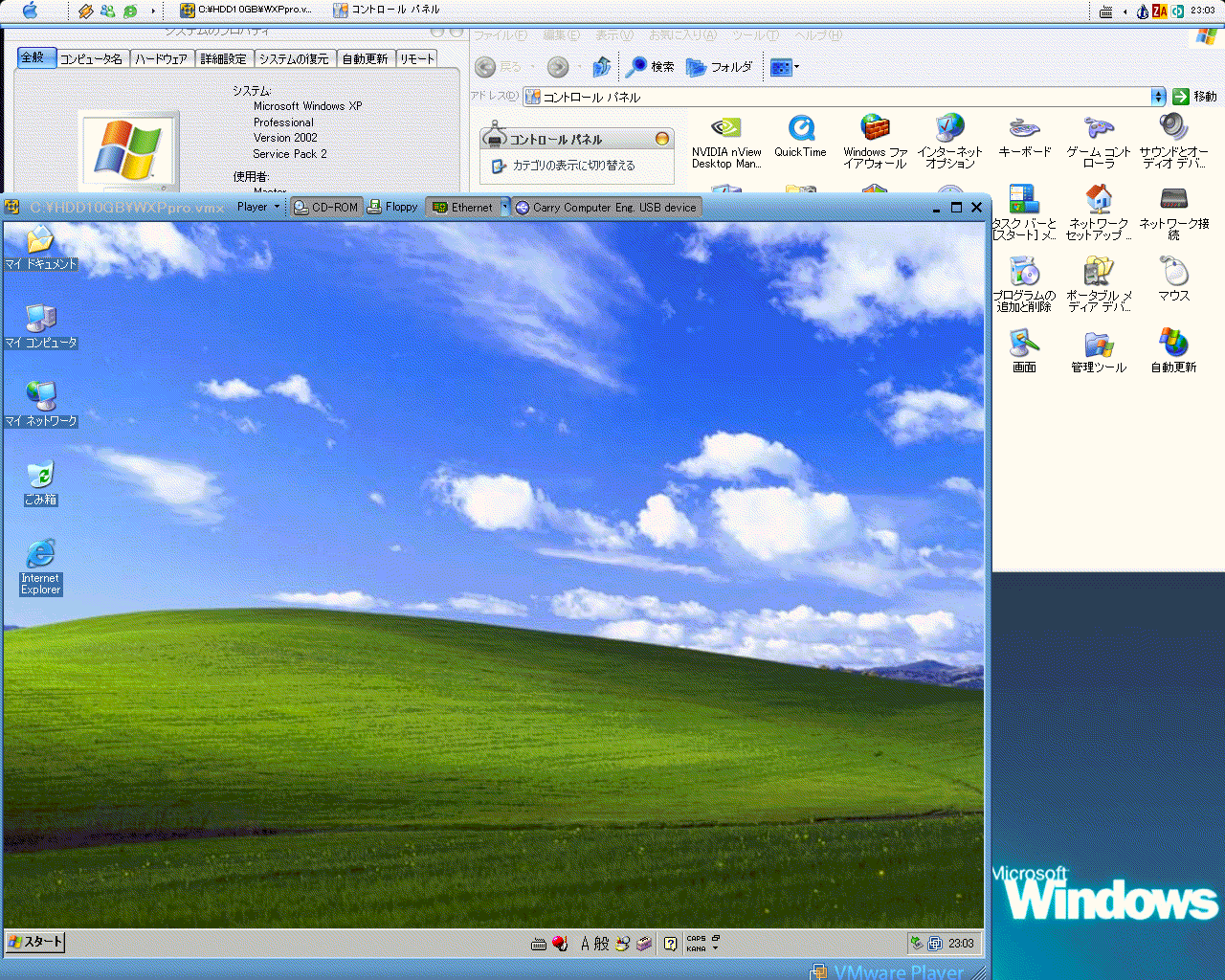 VMware上にもWinXPproを入れています