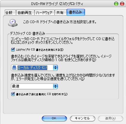 この画像にある画面が出ないよーって場合は、CDドライブが読み取り専用の物であると思われます。