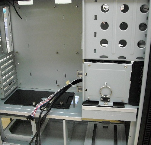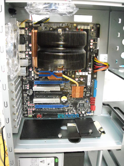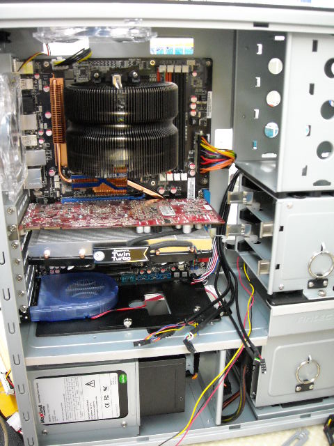 電源の配線と、VGA,シロッコファン(写真真ん中下の青いの)を取り付け。